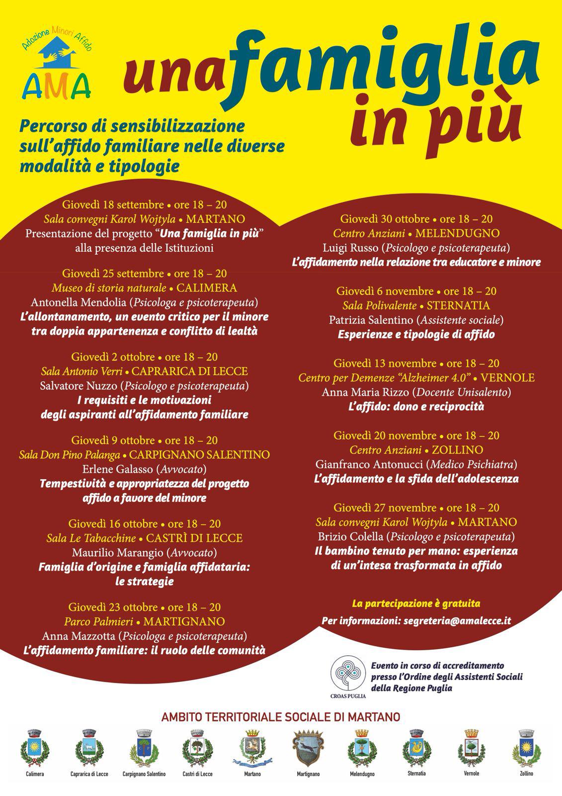 Ama ha organizzato, in collaborazione con l’Ambito Territoriale Sociale di Casarano e la cooperativa Medihospes, un percorso di supporto e accompagnamento per le famiglie affidatarie ...